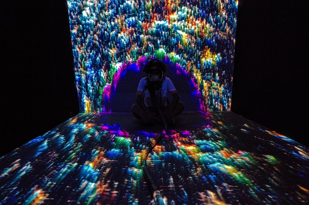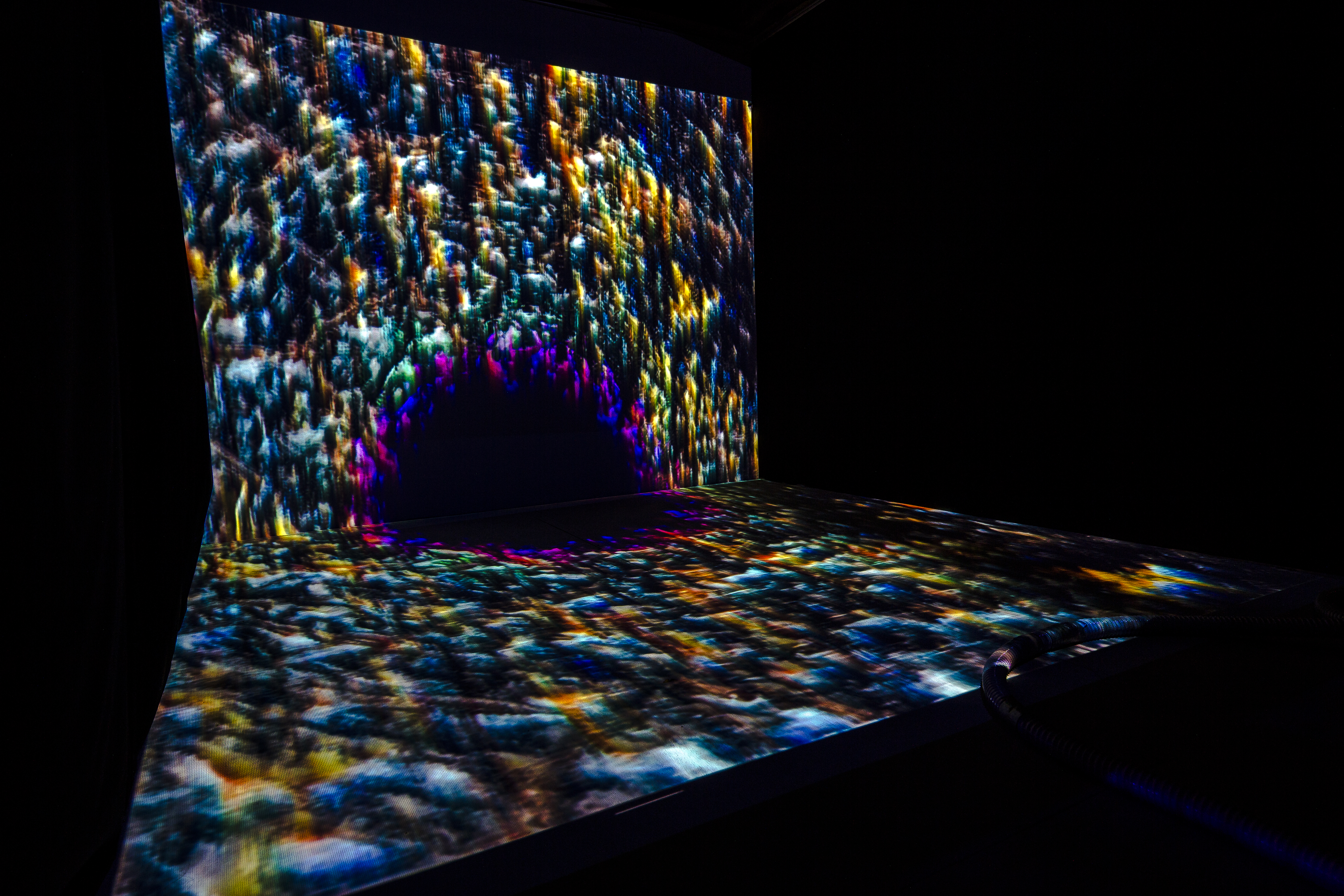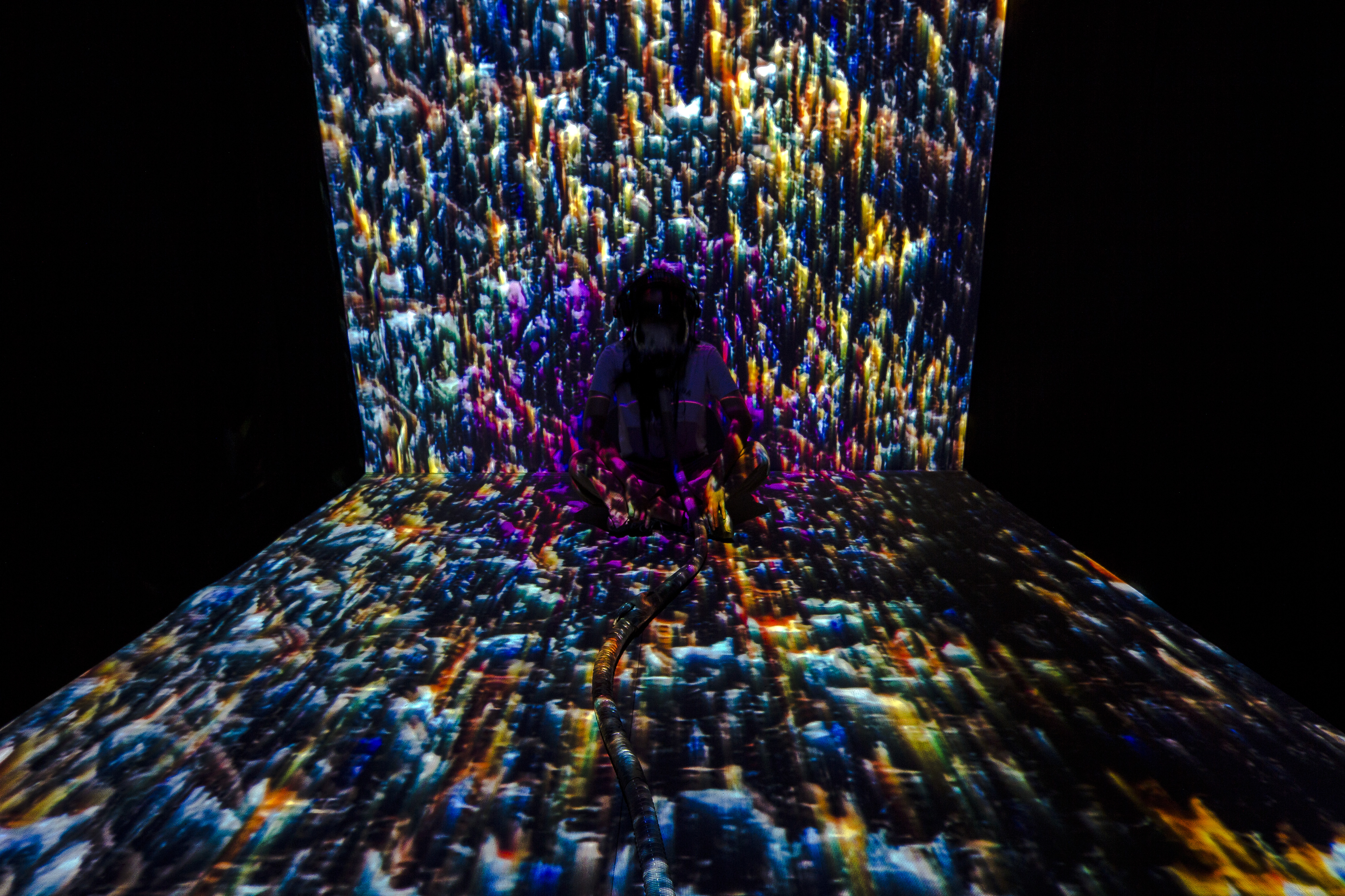 視覺先於其他感官建立空間感受,將呼吸方式裡,起於心理誘發導致的吐納模式重構於沉浸影像體驗,將內在情緒強制外顯於環境中,藉由感受外在影像與內在行動的關係,逐漸掌控外在變化的模式,此互動機制並意圖在參與者藉由呼吸掌控外在的同時,感受身體因過多二氧化碳排出所造成的缺氧錯覺,和因其錯覺後衍生的一連串心理、生理更迭。