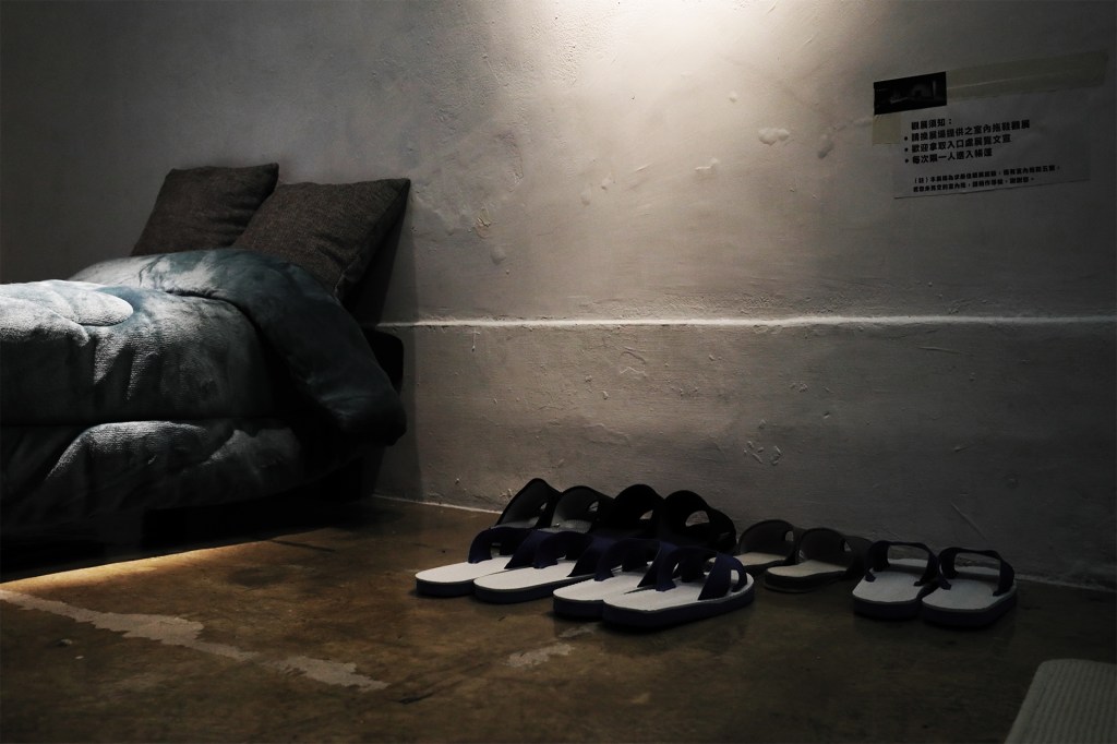作品《一線之隔》以展場空間中如孤島般的帳篷形象與社會中模糊的主流群體樣貌,映射出自我的焦慮與追求穩定的渴望。作品《借來的條件》,透過室內帳生活一年餘的經驗與身體記憶,以敘述「條件」的方式、細描在城市室內帳篷內低限的安身可能。